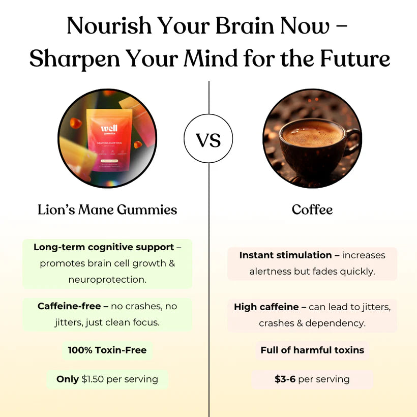 Fuel your brain with Lion's Mane Focus Gummies, specially formulated to support mental clarity, focus, and memory. Elevate your cognitive performance and stay focused on what matters most.