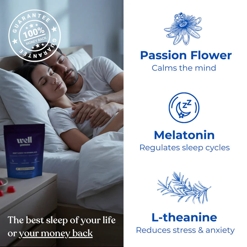 Most people feel calmer within20–30 minutesof taking them. For best results, take 1–2 gummies about half an hour before bedtime.